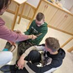 Četrtek je bil deževen, vetroven in hladen. Zato smo zunaj opravili le orientacijski lov za zakladom. V takšnem vremenu je bil to pravi izziv, ampak smo ga uspešno premagali in ugotovili, kdo je ukradel diamantno ogrlico. Dopoldan smo morali pokazati svoje kuharske spretnosti. Za vse nas smo pod budnim očesom učiteljev Saše in Maja pripravili prave idrijske žlikrofe in jih pojedli za kosilo. Popoldan je bil namenjen debati in igram, ob katerih smo razmišljali, se nasmejali, zabavali, predvsem pa krepili dobre medsebojne odnose, se učili biti strpni in povezani v skupini. Po vseh preizkušnjah smo težko dočakali tudi zadnji večer na Vojskem. Polni energije in dobre volje smo ga zaključili v diskoteki z glasbo po našem izboru. Fotografij tega nepozabnega dogodka zaradi varovanja zasebnosti ne bomo objavili.