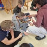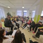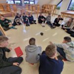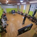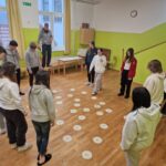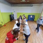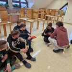 Kot je bilo že včeraj rečeno, so se današnje dopoldanske aktivnosti: pohod, nordijska hoja, plezanje in robotika, ponovile. Tudi popoldan smo preživeli na svežem gorskem zraku. Vsi smo se preizkusili v lokostrelstvu, tudi učitelji. Kateri izmed nas je bil najboljši Robin Hood, uganite sami. Pogreli smo se šele pri večerji, še bolj pa po njej, ko nam je domski učitelj Maj pripravil kviz s stoenim vprašanjem. Vprašanja so bila nalepljena na vidnih mestih po celotnem domu. Več utrinkov in več o veselem vzdušju pa naj povedo fotografije in videoposnetek.