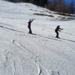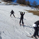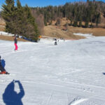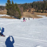 Pri smučanju smo se razdelili v tri skupine glede na naše začetno znanje. Na začetku smo bili malo presenečeni nad strmino, za katero pa smo ugotovili, da le ni tako strašna. Ko smo premagali začetni strah, sta nas svetlo sonce in snežna proga popeljala v dolgo dopoldansko pravljico. Iva, Daita, Blažka, Alina