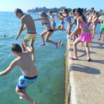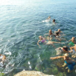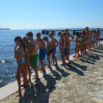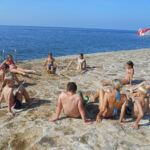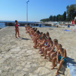 Ko smo prispeli, je bilo kosilo. Potem pa smo se oblekli v kopalke, do konca razpakirali prtljago in se že odpravili do morja. Pri morju smo razgrnili brisače. Potem so nas učitelji razdelili v skupine. Po večerji smo se odpravili na sprehod. Najprej smo se ustavili pri igralih, potem pa na sladoledu.