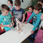 Prvo uro smo izdelovali robotsko roko, z Rokom sva jo uspela narediti prva, nato smo svojo izdelano hidravlično roko tudi preizkusili. Drugo uro smo poslušali zanimivo predavanje o robotiki, tretjo uro pa smo izdelovali modele robotov; nastalo je veliko zanimivih modelov (crab-bot, umobolnica …). Četrto uro smo izdelovali lego avtomobile in z njimi tudi tekmovali. Zadnjo uro pa smo se posvetili izdelovanju in programiranju robotov.