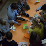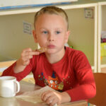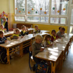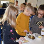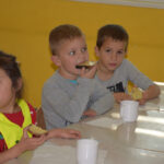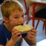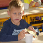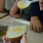 Otroci so danes v šoli zajtrkovali črn kruh, med, maslo, mleko in jabolko – vse domačega porekla.