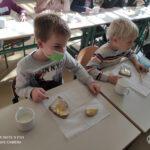 Letošnji Tradicionalni slovenski zajtrk je že enajsti po vrsti in poteka pod sloganom »Zajtrk s sadjem – super dan!«. Kot vsako leto, imamo na ta dan domač kmečki kolač, bio maslo, domači med, domače mleko ter domača jabolka lokalnih pridelovalcev. V razredih smo si prebrali o pomenu zajtrka, kako je nastal projekt Tradicionalni slo zajtrk, ogledali smo si kratke filmčke o kranjski čebelici ter poslušali pesmico o čebelicah.