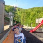 Zbrali smo se  pri Pohorski vzpenjači in jo mahnili  navkreber proti Trikotni jasi. Ob tolmunčku potoka smo zagledali tudi močerada. Pot nas je vodila čez bližnjico po gozdu in korenine dreves smo z lahkoto premagali. Prvošolci so kaj hitro dokazali, da jim pot navkreber ne povzroča prav nobenih težav in naš vmesni cilj- igrala pri vmesni postaji vzpenjače smo presenetljivo hitro dosegli. Po zasluženi malici smo z zanimanjem preizkusili igrala.