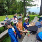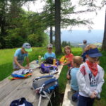 Na našem cilju, koči na Žavcarjevem vrhu, smo si najprej čestitali in zaploskali za še en osvojen vrh. Sledila je malica iz nahrbtnika ter izmenjava sladkarij. Čas je dopuščal, da so se učenci lahko družili in igrali.