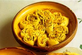 Stuffing: Mix the cottage cheese, add butter mixed with egg yolk and sugar. Afterwards lightly mix in beaten egg whites. Tarragon can be mixed in the stuffing or sprinkled over the filled dough.