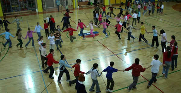 Svet gibanja, svet veselja je del aktivnosti, kjer učenci spoznavajo skupinske igre in razvijajo socialni čut za bližnje.