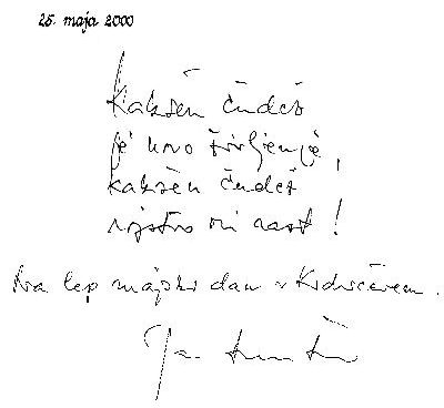 TONE KUNTNER MISLI OB OTVORITVI - zapis v spominsko knjigo