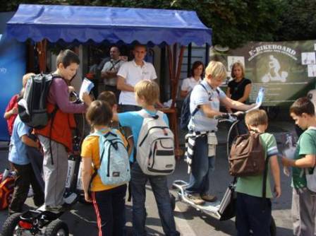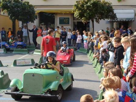Tudi učenci 4. razreda smo se po športnih igrah v mestnem parku odpravili v mestno središče, kjer smo si ogledali predstavitve različnih programov (električnega kolesa, vozila na plin, spretnostne vožnje) in se udeležili programa Jumicar – vožnje z električnimi avtomobilčki.