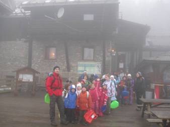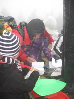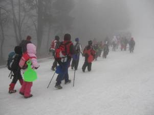 Planinci v meglici proti Črnemu vrhu. |