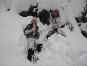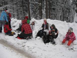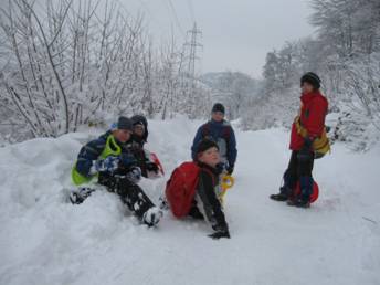 … potem smo se kar sesedli v kupe snega. |