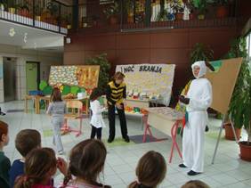 Z učenci drugih in tretjih razredov smo se zbrali v petek, 20. 4. 2012, v pravljičnem gozdu. Skozi pravljične dogodivščine sta jih vodila in usmerjala Zajček in Čebelica. Za vstop na nočno pustolovščino so morali otroci prinesti svojo najljubšo knjigo. Vse pa se ni vrtelo samo okoli knjig. Pustolovščina se je začela ob 17. uri z velikim sprejemom na gozdni jasi, kjer so se otroci spremenili v živalce našega gozda. Najprej so otroci ustvarjali v delavnicah. Po napornem delu jih je čakala prava gozdna večerja, po njej pa razburljivo iskanje skritega zaklada. Ker so mladi raziskovalci uspešno rešili vse naloge, jih je pot pripeljala do telovadnice, kjer jih je čakal pravljični zaklad – lutkovna predstava Žabec in njegovo srce, ki so jo izvrstno odigrali člani prostovoljnega lutkovnega društva Smeško iz Celja. Po predstavi jih je na gozdni jasi čakala čajanka in sladke dobrote. Ta večer smo izbirali tudi naj knjigo in težko pričakovali skupno spanje ter branje z naglavnimi svetilkamiv telovadnici.