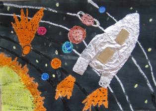 V 5. b smo se s pomočjo pesmi Vesoljec, ki jo je napisal Tone Pavček, odpravili na izlet v vesolje.