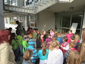 Učenci so si najprej ogledali pomlad z dvorišča, potem pa so reševali delovne liste. Z gospodom Gorazdom so sadili drevesa in semena. Predstavil jim je setev rastlin, zgradbo semena in pa vrste rastlin. Napolnili so lončke z zemljo in sadili semena.