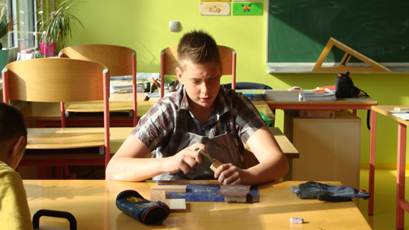 V tehniški delavnici so učenci izdelovali lesene napise za zelišča.