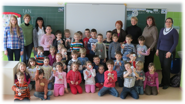 Zadnji dan pred zimskimi počitnicami je bil za naše prvošolce prav poseben. Zjutraj jih je obiskala muca Taca, po malici pa smo se vsi skupaj zbrali v posebej lepo pripravljeni učilnici. Predsednica šolske skupnosti učencev Klara Drofenik je vsakemu učencu za spomin na ta dan izročila obesek, izdelan posebej za ta dogodek.