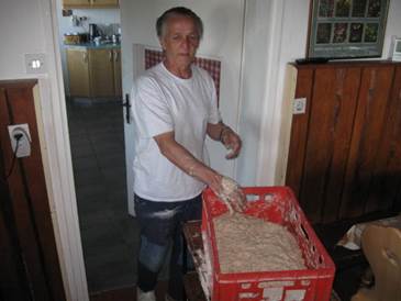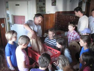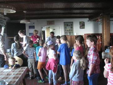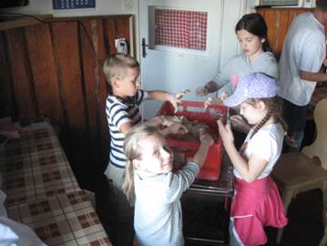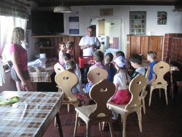 Po jutranji budnici in umivanju smo sodelovali pri peki kruha. |
