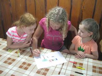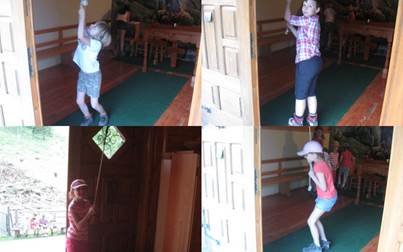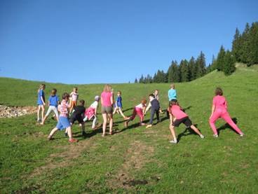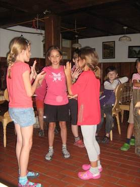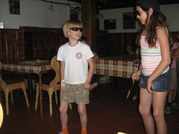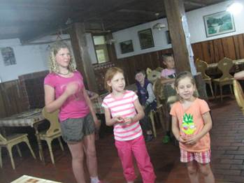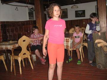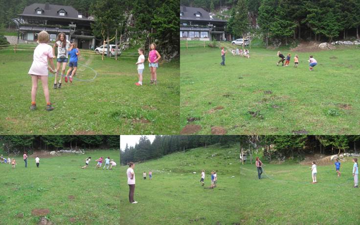 Pred večerjo smo na travniku še malo potelovadili:skakali smo čez kolebnico, se pomerili v vlečenju vrvi in igrali med dvema ognjema. |