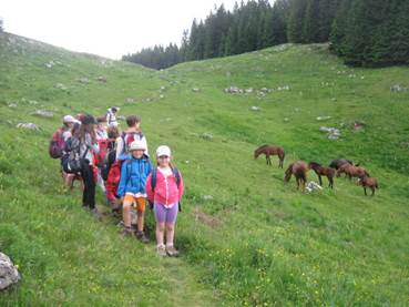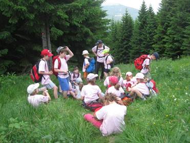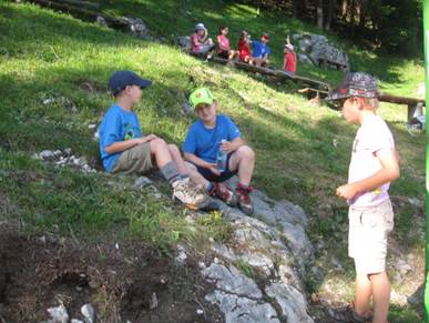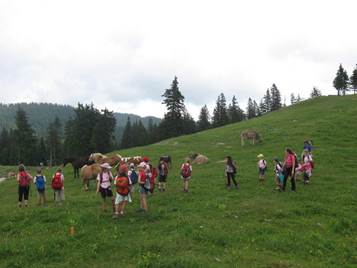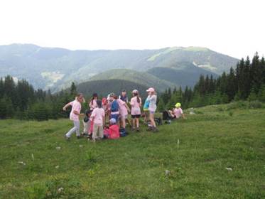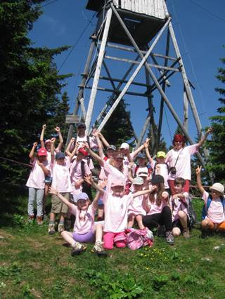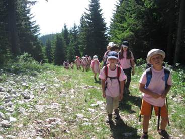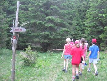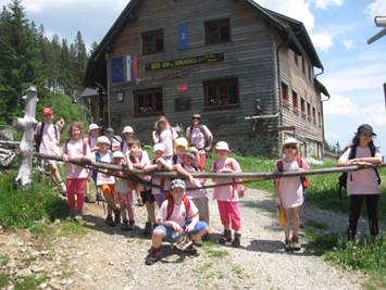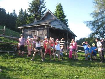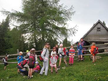 Začnimo s taborom na Mozirski koči. Zaradi vročine smo se z avtobusom odpeljali do vrha. |