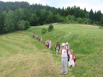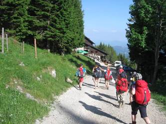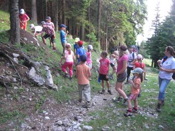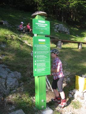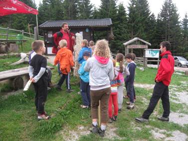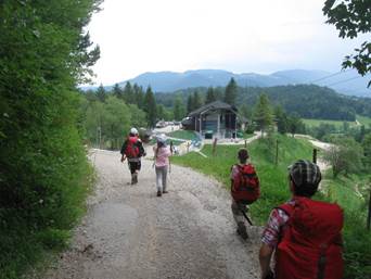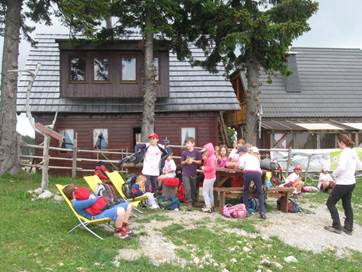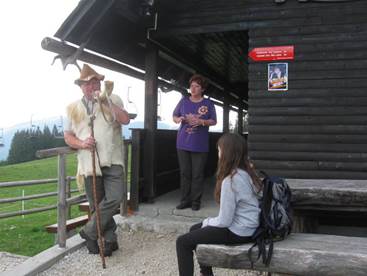 Pred kočo smo še malce posedeli in se pripravili na ogledni sprehod. |