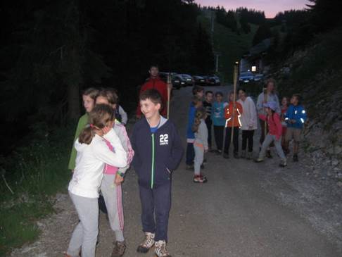 Po temi z baklami nazaj proti Mozirski koči in hitro pod odejo.