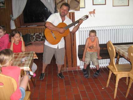 Ta talent pa je oskrbnik koče, Filip, ki nam je zapel nekaj pesmi in predstavil zgodovino Mozirske koče. |