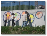 Učenci so slikali grafite v okolici šole - slikali so šolske EKO motive.