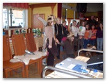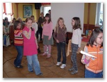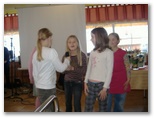 Voditeljici Živa Nardin in Laura Rozman sta nas vodili v pomladno popotovanje s pesmicami in zgodbicami ter zvoki harmonik.