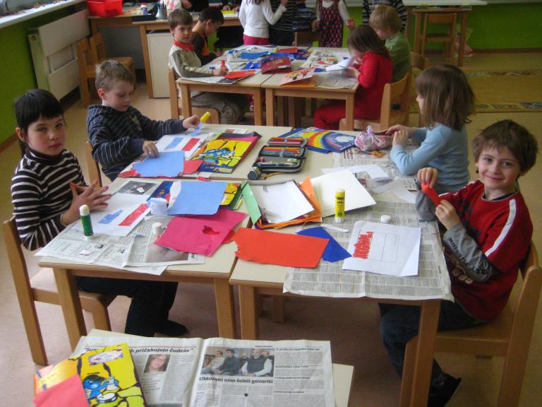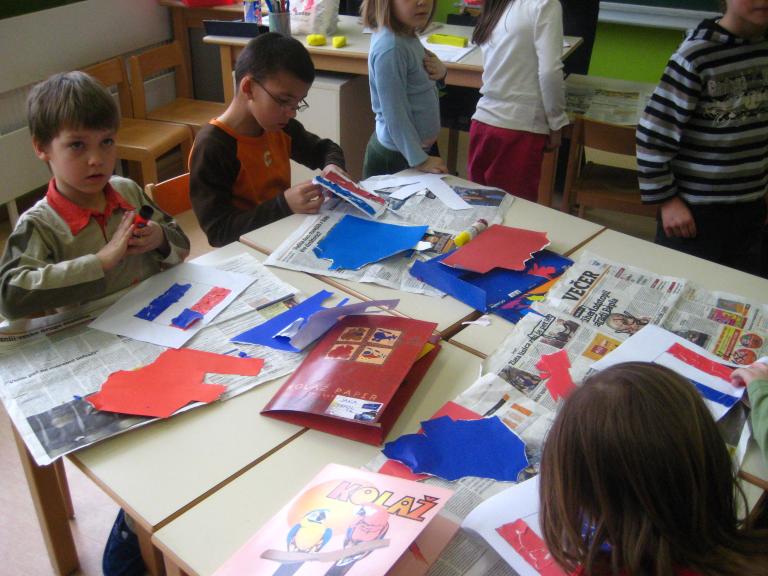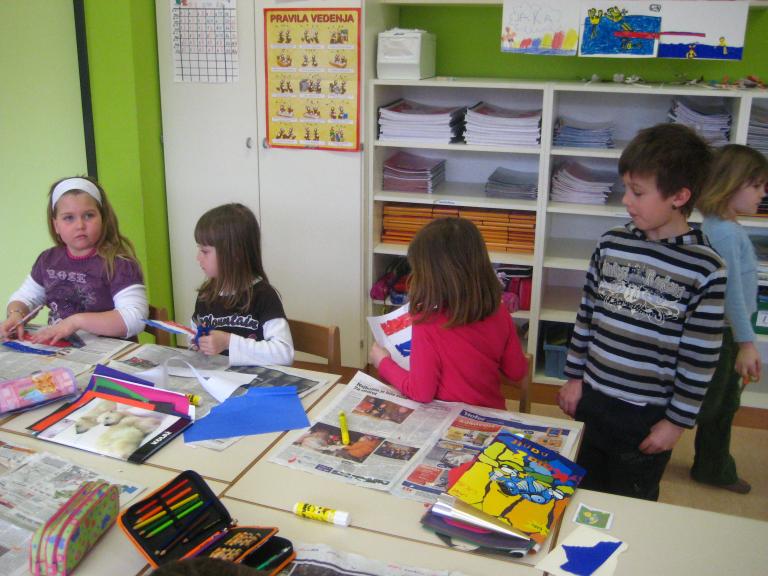 IZDELAVA TULIPANOV V 2.B RAZREDU 2. b vodi učiteljica Mateja Štor. Prvi dve uri so se pogovarjali o državi Nizozemski, zadnje 3 ure pa so izdelovali tulipane, za to delo so potrebovali: - lesene palčke, - stiropor, - kolaž papir, - vodene barve. Delo je potekalo tako, da so sprva pobarvali palčke, nato naredili cvetove ter liste iz kolaž in navadnega papirja. Ko so končali z delom, so svoje izdelke, torej tulipane zapičili v stiropor v obliki Nizozemske , tako je nastal zemljevid. Na koncu pa so še prebrali zgodbico o žabcu. |