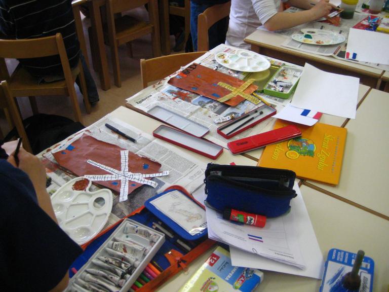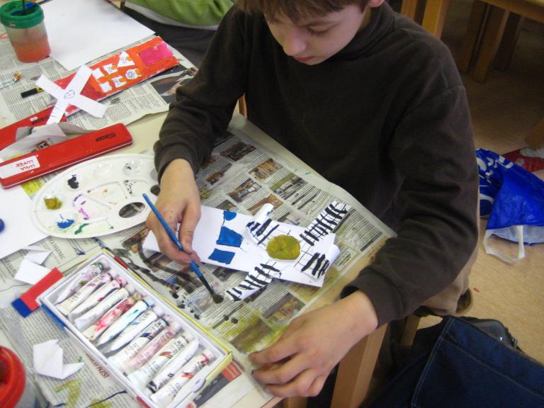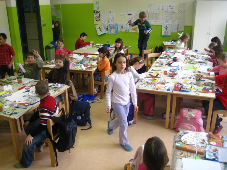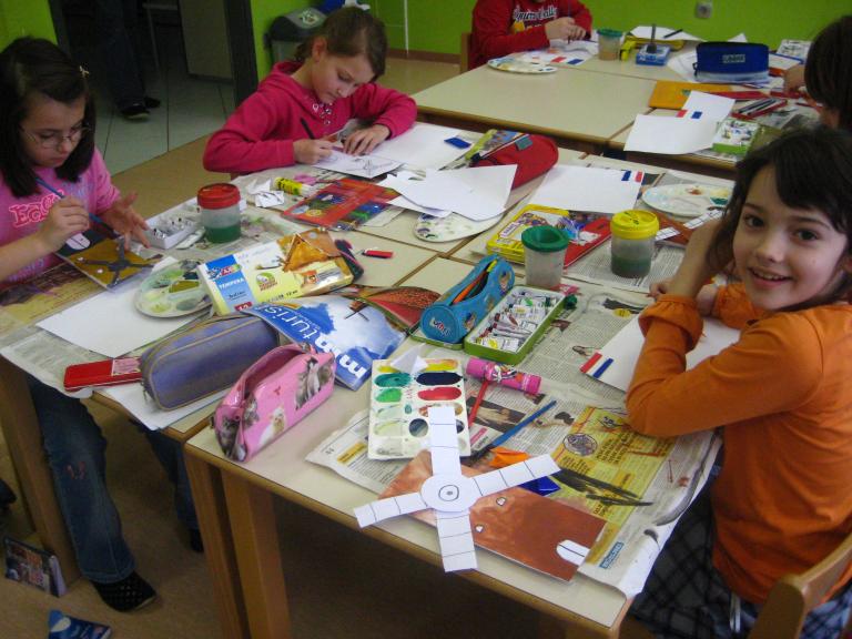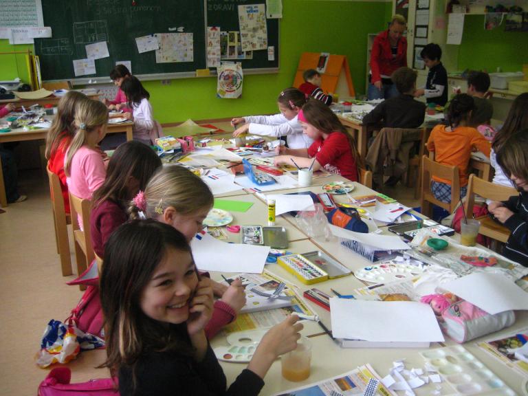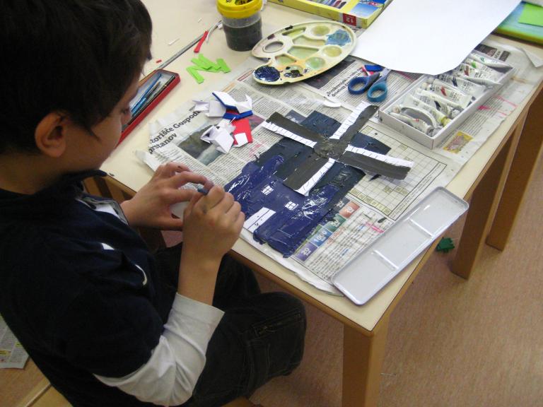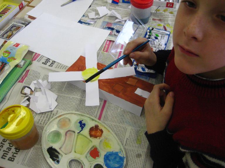 Spretne ročice 3. a 3. a je vodila učiteljica Alja, izdelovali so zgibanke - mlin na veter. Kasneje pa so ustvarjali tulipane iz papirja. Na koncu pa izdelali veličastne zastave in jih prilepili na list papirja.