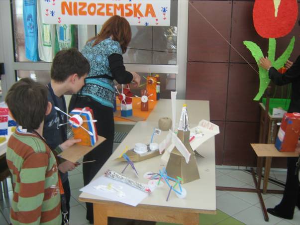 4.b razred se je prvi in drugo uro pogovarjal o Nizozemski in gledal fotografije o državi. Preostale tri ure so izdelali mline na veter iz stiropora, žličk, tetrapakov in jih pobarvali z značilnimi barvami Nizozemske.