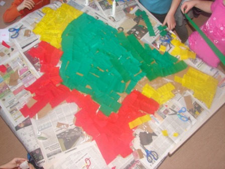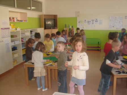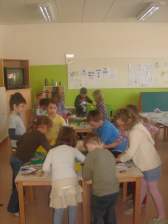 Najprej so si ogledali film o Belgiji, nato pa še risanko o Smrkcih. Izdelali so Deželo Smrkcev. Izdelek je iz kartona, Smrkci pa iz papirja (pobarvanka). Za takšen izdelek so potrebovali lepilo in tempera barve ter veselo voljo. Vodili so jih učiteljici Mateja Štor in Oprešnik Tatjana. Saša Sivka, 8. a