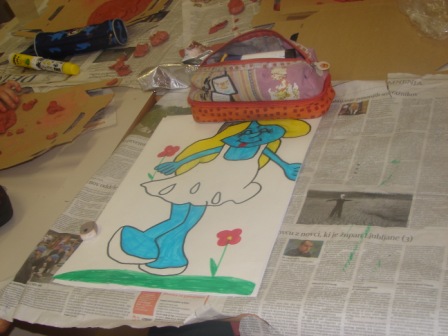 Učenci 5. b razreda so delali v treh skupinah. Prva skupina je izdelala smrkce iz das mase. Dekleta so naredila plakat o Bruseljskem dečku. V tretji skupini pa so naredili maketo atomiuma. Vzdušje v razredu je bilo sproščeno. Sanja Belac 7. a