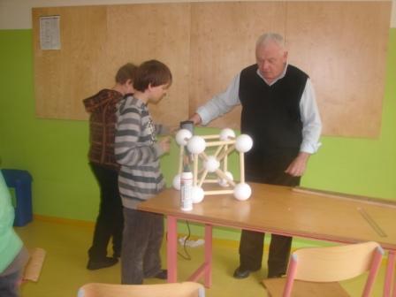 Prvo uro so iskali podatke po internetu ter računali pomanjšana merila. Nato so začeli z izdelavo atoma, žagati, sestavljati posamezne dele. V naslednjih štirih urah so torej izdelali atomium. Vodja delavnice pa je bil Gerhard Skaza.