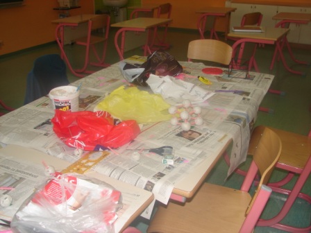 To delavnico je vodila ga. Jana Draksler. Izdelovali so maketo železnega atoma – Atomium. Ko sem prišla v razred, so oblikovali kroglice iz das mase, katera je tudi glavni material. V delavnici so bili štirje učenci.
