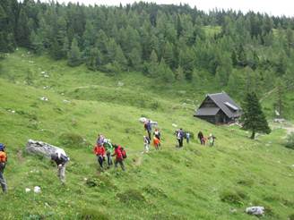 Skoraj zadnja skupinska pred Kočo na Loki pod Raduho. |