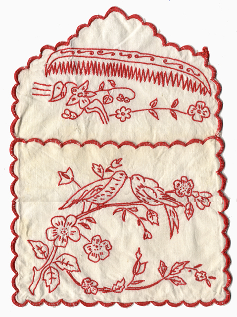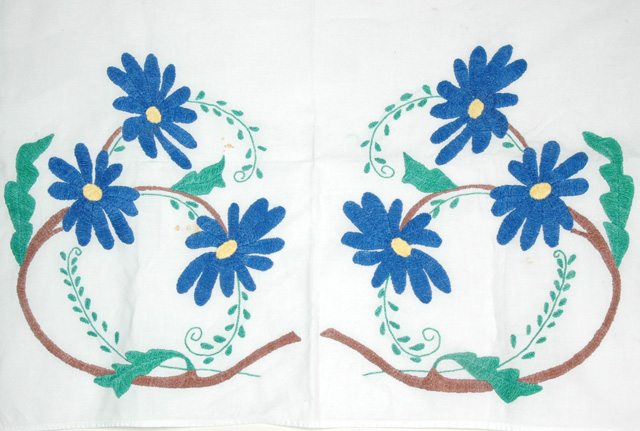 enostavno polno vezenje (cvetovi, žito, grozdje, ptice) v eni barvi: