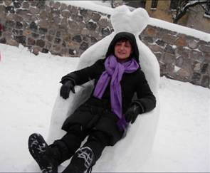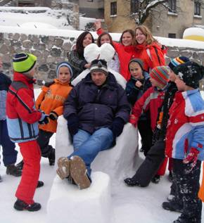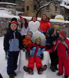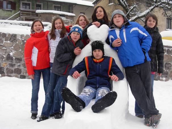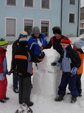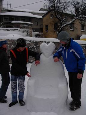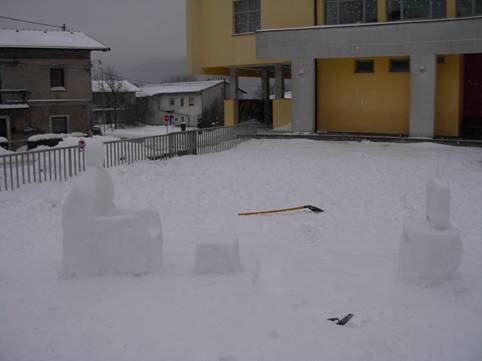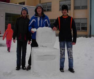 Andraž, Patrik in Jan, učenci iz 8. razreda so začeli ustvarjati skulpture iz snega. Na pomoč so jim takoj priskočili otroci iz nižjih razredov.