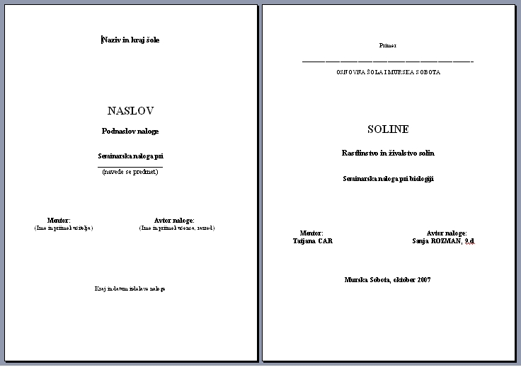 ime in priimek avtorja naloge. Ta avtor si ti. Če boš seminarsko nalogo delal s sošolcem, se morata podpisati oba.