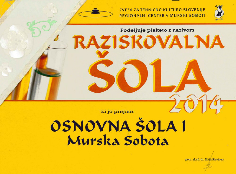 Naša šola je prejela naziv »RAZISKOVALNA ŠOLA 2014«.
