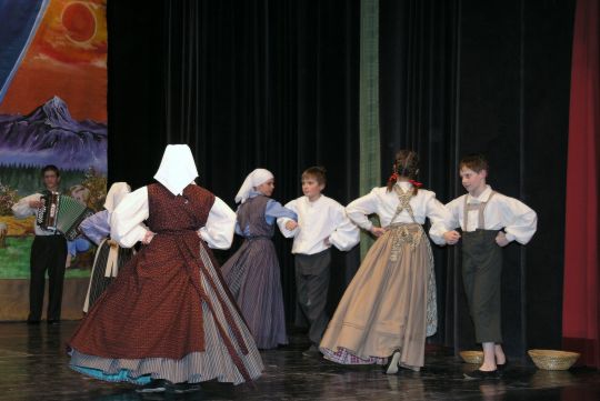 Naše učenke in učenci, ki plešejo v folklorni skupini šole, so v petek, 10. marca 2006, nastopili na Območnem srečanju folklornih skupin v Predosljah.