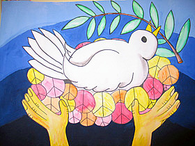 Tudi letos so učenci pri likovni vzgoji pod vodstvom mentorice Maje Zajc Sobočan ustvarjali plakate z mirovniško vsebino .