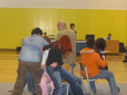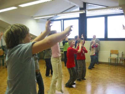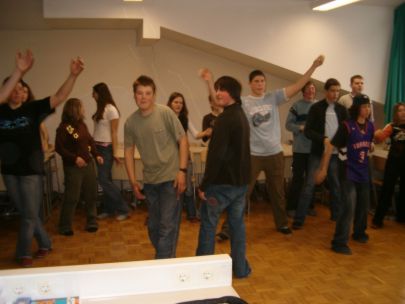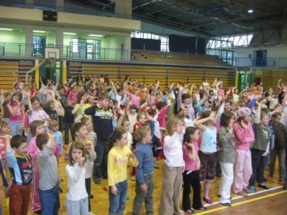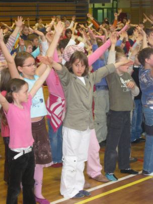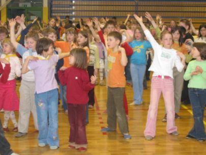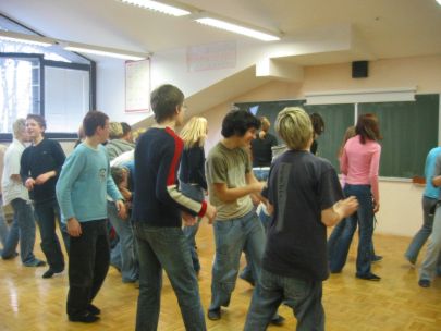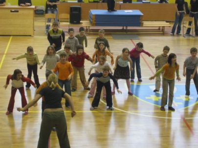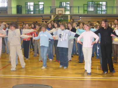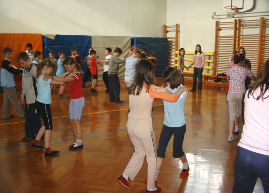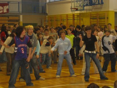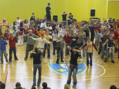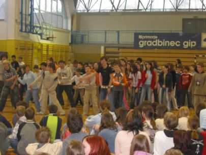 Po dveh urah učenja plesnih korakov so se vsi učenci preselili v športno dvorano, kjer je vsak razred predstavil svojo plesno točko. Začetna sramežljivost je prerasla v sproščeno vzdušje in vsi učenci so nasmejani in dobre volje poplesavali v ritmu prijetne glasbe.