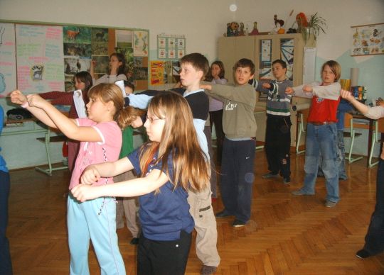 Učenci so se učili plesnih korakov modernih skupinskih plesov pod vodstvom izkušenih animatorjev.