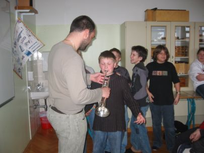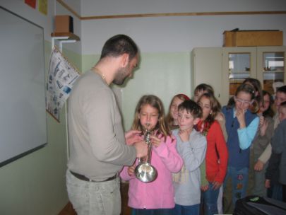 Matej Rihter je v okviru pouka glasbene vzgoje učenkam in učencem tretjih, četrtih petih in sedmih razredov predstavil različna pihala in trobila. In ne le to-tudi preizkusili so jih lahko.
