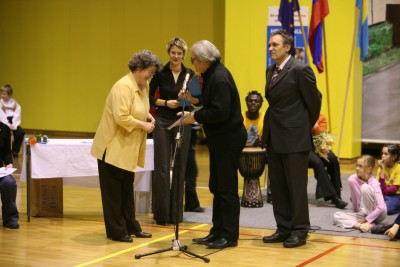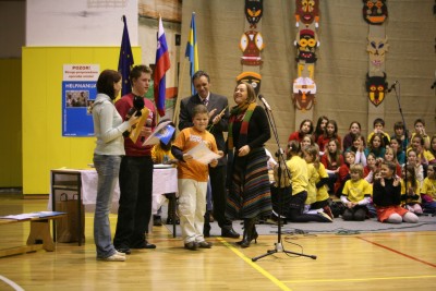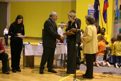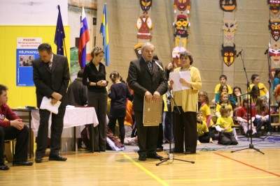 | Ga. Skubic je podala obrazložitev županovih zaslug šoli, krožku in Unicefu. |