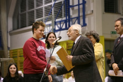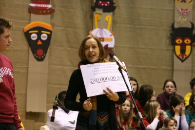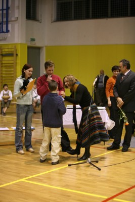 | Rok Hudobivnik prejema zahvalo Helpmanije za prizadevno zbiranje odpadnega papirja (izkupiček za Helpmanijo). |