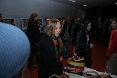 | Ambasadorka M. Zupančič navdušena nad izdelki trgovine Tri muhe (Stari trg, Ljubljana). |