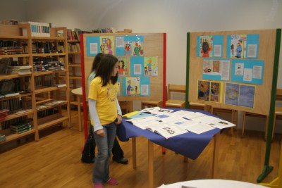 | In šla je mimo, Ana Korbar in Mina Grčar, razstava v knjižnici šole. |