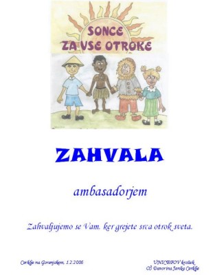 | Zahvala Unicefovega krožka ambasadorjem. |